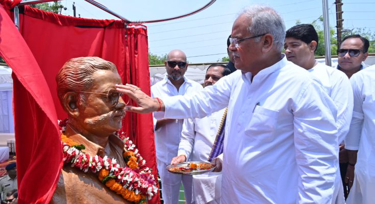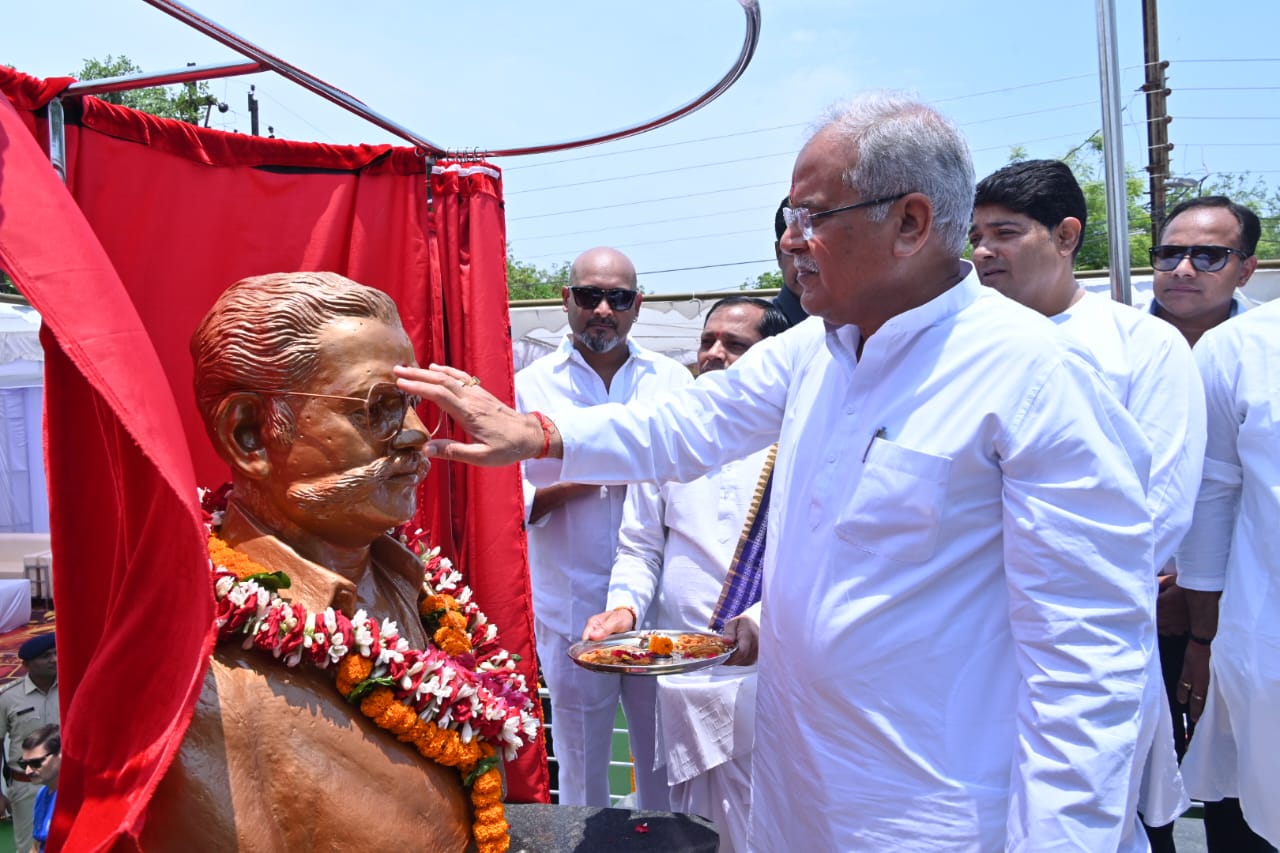 रायपुर, 26 अप्रैल 2023/ मुख्यमंत्री श्री भूपेश बघेल ने आज प्रदेशव्यापी भेंट मुलाकात अभियान के अंतर्गत रायपुर दक्षिण विधानसभा के कटोरा तालाब के पास सतपथी चौक में 65 हजार रुपए की लागत से भिलाई के रहने वाले पद्मश्री नेल्सन द्वारा निर्मित स्व.पं.लक्ष्मण जयदेव सतपथी की प्रतिमा का अनावरण किया। इस अवसर पर मुख्यमंत्री ने सभी को अपनी बधाई एवं शुभकामनाएं दी।