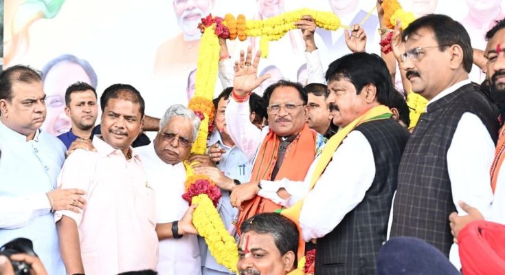 मुख्यमंत्री का पुष्प गुच्छों से लेकर गजमाला तक से स्वागत किया गया। एयरपोर्ट के निकास द्वार से मीडिया गैलेरी तक लगभग 100 मीटर की दूरी तय करने में श्री साय को लगभग 15 मिनट लगे। इस दौरान लोगों ने पुष्प वर्षा से भी श्री साय का स्वागत किया। बाद में मुख्यमंत्री ने उपस्थित जनसमुदाय को सम्बोधित किया और इस भव्य स्वागत के लिए सभी का आभार जताया।
