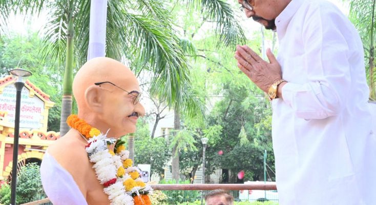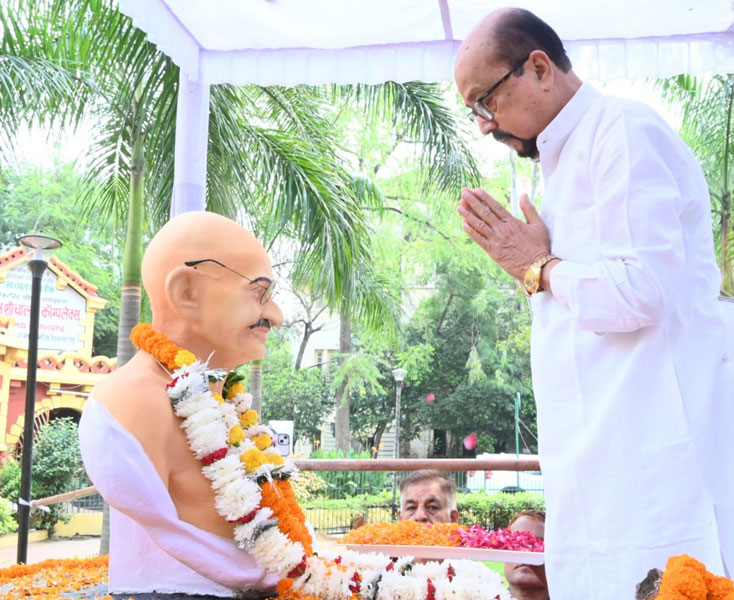 रायपुर, 2 अक्टूबर 2025 : राज्यपाल श्री रमेन डेका ने आज राष्ट्रपिता महात्मा गांधी और पूर्व प्रधानमंत्री लाल बहादुर शास्त्री की जयंती के अवसर पर राजभवन में श्रद्धा सुमन अर्पित किए। राज्यपाल ने टाउन हॉल परिसर में महात्मा गांधी जी की प्रतिमा पर पुष्पांजलि अर्पित कर उन्हें भावभीनी श्रद्धांजलि दी।
