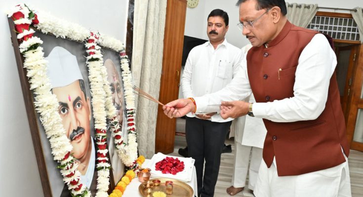 रायपुर, 02 अक्टूबर 2025 : मुख्यमंत्री श्री विष्णु देव साय ने आज राजधानी रायपुर स्थित मुख्यमंत्री निवास कार्यालय में राष्ट्रपिता महात्मा गांधी और पूर्व प्रधानमंत्री स्वर्गीय श्री लाल बहादुर शास्त्री की जयंती पर उनके छायाचित्र पर पुष्प अर्पित कर नमन किया।