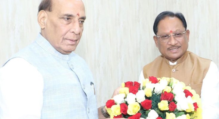 रायपुर , 6 अक्टूबर 2025 : छत्तीसगढ़ के मुख्यमंत्री श्री विष्णुदेव साय ने आज नई दिल्ली में केंद्रीय रक्षा मंत्री श्री राजनाथ सिंह से उनके निवास पर सौजन्य मुलाक़ात की। बैठक में बिलासपुर एयरपोर्ट के विस्तार, रक्षा क्षेत्र के विकास, पूरे प्रदेश में सेना भर्ती रैलियों के आयोजन एवं नौसैनिक पोतों के नामकरण जैसे कई महत्वपूर्ण विषयों पर सार्थक चर्चा हुई। इस अवसर पर केंद्रीय आवासन एवं शहरी कार्य राज्यमंत्री श्री तोखन साहू और मुख्यमंत्री के प्रमुख सचिव श्री सुबोध कुमार सिंह भी उपस्थित थे।