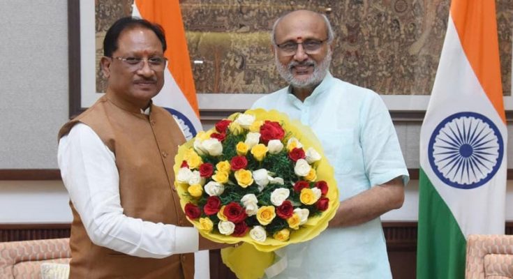 रायपुर, 06 अक्टूबर 2025 : मुख्यमंत्री श्री विष्णु देव साय ने आज नई दिल्ली में भारत के उपराष्ट्रपति श्री सी. पी. राधाकृष्णन से सौजन्य भेंट की।