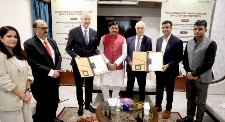 भोपाल : मंगलवार, अक्टूबर 7, 2025 : मध्यप्रदेश में अंतर्राष्ट्रीय स्तर का कन्वेंशन सेन्टर स्थापित करने के लिये कुशाभाऊ ठाकरे अंतर्राष्ट्रीय कन्वेशन सेंटर में मुख्यमंत्री डॉ. मोहन यादव की उपस्थिति में मध्यप्रदेश और स्पेन के फीरा बार्सिलोना इंटरनेशनल के बीच एमओयू हुआ। यह केन्द्र न केवल नवाचार एवं स्मार्ट शहरी समाधानों को प्रोत्साहित करेगा बल्कि वैश्विक स्तर के आयोजनों और निवेश सम्मेलनों की मेजबानी का मंच भी बनेगा। उल्लेखनीय है कि मुख्यमंत्री डॉ. यादव के इसी साल जुलाई में स्पेन प्रवास के दौरान संस्थान के पदाधिकारियों से चर्चा हुई थी और उन्होंने निवेशकों को मध्यप्रदेश आमंत्रित किया था।