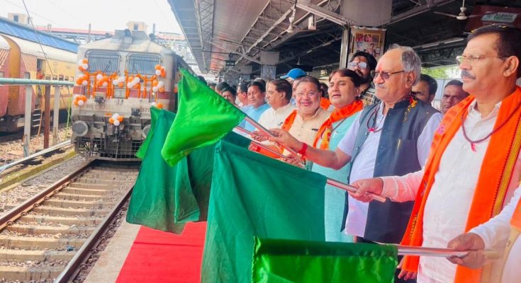 रायपुर, 08 अक्टूबर 2025 : आज रायपुर रेलवे स्टेशन से रायपुर संभाग के 850 तीर्थ यात्रियों को लेकर स्पेशल ट्रेन प्रभु श्री रामलला के दर्शन के लिए अयोध्या धाम रवाना हुई। इस यात्रा के दौरान तीर्थ यात्री काशी भी जाएंगे और वहां विश्वनाथ जी के दर्शन भी करेंगे।