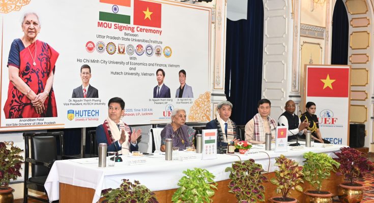 अयोध्या 10 अक्टूबर 2025 (SHABD):राज्यपाल एवं राज्य विश्वविद्यालयों की कुलाधिपति आनंदीबेन पटेल की अध्यक्षता में आज राजभवन में उत्तर प्रदेश के 09 विश्वविद्यालयों तथा वियतनाम में हो ची मिन्ह सिटी स्थित यूनिवर्सिटी ऑफ इकोनॉमिक्स एंड फाइनेंस एवं ह्यूटेक यूनिवर्सिटी ऑफ टेक्नोलॉजी, के मध्य विविध विषयों पर समझौता ज्ञापन पर हस्ताक्षर किए गए। इस अवसर पर राज्यपाल ने कहा कि यह न केवल भारत-वियतनाम मैत्री संबंधों को और सुदृढ़ करेगा, बल्कि छात्रों, शिक्षकों एवं शोधकर्ताओं को वैश्विक अवसरों से जोड़ने में भी सहायक सिद्ध होगा।
