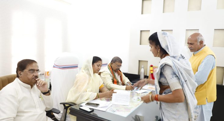 गुरुवार को सहयोग केंद्र में मंत्री श्रीमती राजवाड़े से 150 से अधिक कार्यकर्ताओं व आमजनों ने मुलाकात कर आवेदन दिए। मंत्री श्रीमती राजवाड़े ने कार्यकर्ताओं को आश्वस्त किया कि सभी समस्याओं का तेजी से निराकरण किया जाएगा। इस अवसर पर भाजपा प्रदेश महामंत्री डॉ. नवीन मार्कण्डेय, प्रदेश कार्यालय मंत्री अशोक बजाज एवं सहयोग केन्द्र प्रभारी सचिदानंद उपासने सहित पदाधिकारीगण व कार्यकर्तागण उपस्थित रहे।