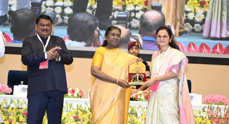 रायपुर, 19 अक्टूबर 2025 : देश की राजधानी नई दिल्ली के विज्ञान भवन में आयोजित ‘राष्ट्रीय कॉन्क्लेव ऑन आदि कर्मयोगी अभियान’ में छत्तीगसढ के कोरिया जिले ने एक बार फिर अपनी विकास यात्रा से राष्ट्रीय स्तर पर पहचान बनाई है। भारत सरकार के जनजातीय कार्य मंत्रालय द्वारा आयोजित इस भव्य समारोह में राष्ट्रपति श्रीमती द्रौपदी मुर्मू ने धरती आबा जनजाति ग्राम उत्कर्ष अभियान में उत्कृष्ट कार्यों के लिए कोरिया जिले की कलेक्टर श्रीमती चंदन त्रिपाठी को सम्मानित किया।