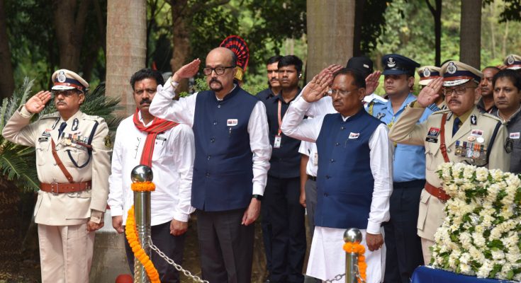 रायपुर, 21 अक्टूबर 2025 : राज्यपाल श्री रमेन डेका और मुख्यमंत्री श्री विष्णु देव साय आज पुलिस स्मृति दिवस के अवसर पर राजधानी रायपुर स्थित शहीद वाटिका पहुंचे। उन्होंने अमर जवान स्तंभ पर पुष्पांजलि अर्पित कर शहीद वीर जवानों को नमन किया। उन्होंने शहीदों के सर्वोच्च बलिदान को स्मरण करते हुए उनके परिजनों के प्रति सम्मान और कृतज्ञता व्यक्त की।
