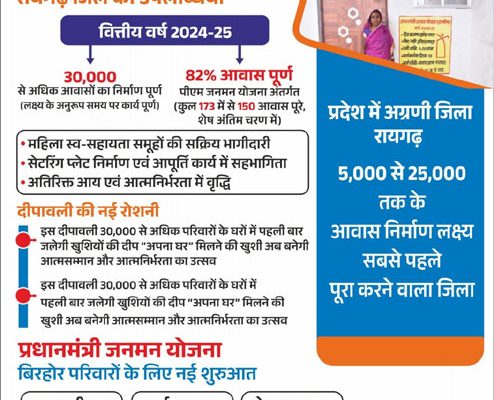 रायगढ़ जिले में वित्तीय वर्ष 2024-25 में स्वीकृत आवासों में से इन 30 हजार से अधिक घरों का निर्माण समय पर पूरा होना न केवल प्रशासनिक दक्षता का उदाहरण है, बल्कि यह ग्रामीण हितग्राहियों के जीवन में स्थायित्व और सम्मान का नया अध्याय भी जोड़ रहा है। इस बार दीपावली उनके लिए वास्तव में विशेष होगी, क्योंकि इस बार दीये उन घरों में जलेंगे, जिनकी दीवारें खुद उनकी मेहनत, उम्मीदों और सरकारी योजनाओं की संवेदनशीलता की कहानी कह रही हैं।