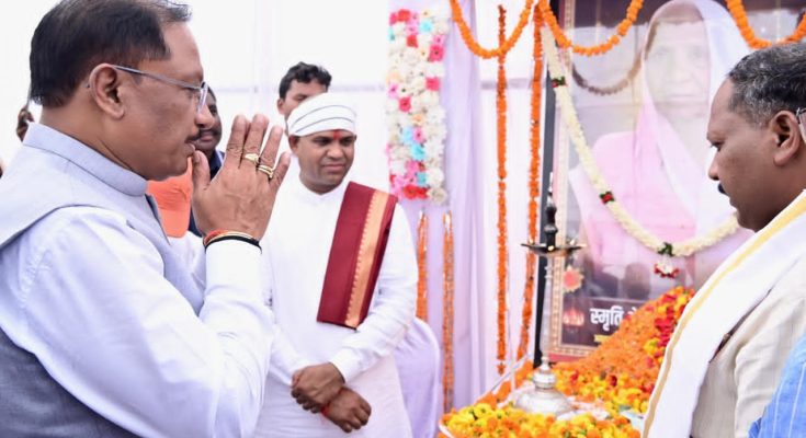 रायपुर, 23 अक्टूबर 2025/ मुख्यमंत्री श्री विष्णु देव साय आज विधायक एवं मध्य क्षेत्र आदिवासी विकास प्राधिकरण के उपाध्यक्ष श्री प्रणव कुमार मरपच्ची की माताजी स्वर्गीय श्रीमती चन्दन बाई जी की तेरहवीं एवं श्रद्धांजलि सभा में शामिल हुए। मुख्यमंत्री ने श्रद्धांजलि सभा में दिवंगत आत्मा को श्रद्धा सुमन अर्पित करते हुए उनके चित्र पर पुष्पांजलि अर्पित की और ईश्वर से दिवंगत आत्मा की शांति के लिए प्रार्थना की।