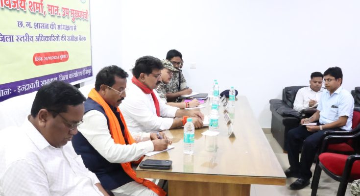 रायपुर, 24 अक्टूबर 2025 : छत्तीसगढ़ शासन के उपमुख्यमंत्री एवं गृहमंत्री श्री विजय शर्मा ने आज अपने बीजापुर प्रवास के दौरान सर्किट हाउस में जिला स्तरीय अधिकारियों की समीक्षा बैठक ली। बैठक में उन्होंने पुनर्वास नीति के तहत आत्मसमर्पित नक्सलियों को पुनर्वास केंद्र में उपलब्ध कराई जा रही सुविधाओं की विस्तारपूर्वक समीक्षा की।