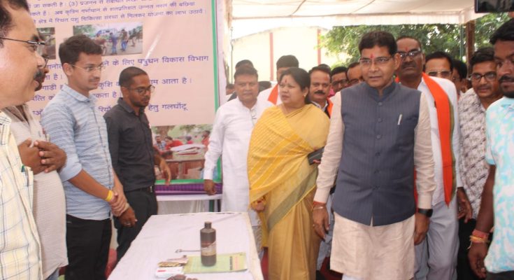 इस अवसर पर मंत्री श्री वर्मा ने कृषि, पशुपालन, उद्यानिकी एवं मत्स्य विभाग द्वारा लगाए गए प्रदर्शनी स्टॉलों का अवलोकन करते हुए हितग्राहियों, महिला स्व-सहायता समूहों और विभागीय अधिकारियों से उत्पादों एवं तकनीकों की जानकारी ली। उन्होंने किसानों को नई कृषि तकनीकें अपनाने, मृदा परीक्षण शिविरों में भाग लेने तथा कीटनाशकों के सुरक्षित उपयोग की अपील की। उन्होंने यह भी कहा कि सारंगढ़ क्षेत्र की मिट्टी तिलहन उत्पादन के लिए विशेष रूप से उपयुक्त है। तिलहन नगदी फसल है, जिससे किसानों की आय में उल्लेखनीय वृद्धि संभव है। मुख्यमंत्री श्री विष्णुदेव साय के नेतृत्व में सरकार किसानों के लिए घोषित अधिकांश वादों को पूरा कर चुकी है, जिनमें भूमिहीन कृषकों को 10 हजार रुपये की सहायता राशि एक प्रमुख उपलब्धि है।