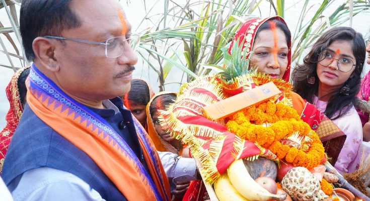 रायपुर 28 अक्टूबर 2025/मुख्यमंत्री श्री विष्णु देव साय और उनकी धर्मपत्नी श्रीमती कौशल्या साय ने आज छठ महापर्व के पावन अवसर पर जशपुर जिले के कुनकुरी छठ घाट में उगते सूर्य को अर्घ्य अर्पित किया। मुख्यमंत्री श्री साय ने प्रदेश की सुख, समृद्धि और खुशहाली की कामना करते हुए प्रदेशवासियों को छठ पूजा की हार्दिक शुभकामनाएं दीं। उन्होंने कहा कि छठ पूजा सूर्य उपासना और सामाजिक समरसता का प्रतीक है।