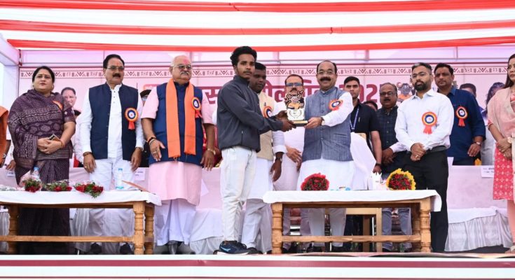 रायपुर, 28 अक्टूबर 2025 : उप मुख्यमंत्री तथा खेल एवं युवा कल्याण मंत्री श्री अरुण साव ने आज बस्तर ओलंपिक-2025 के विकासखण्ड स्तरीय खेल प्रतियोगिताओं का शुभारंभ किया। उन्होंने कांकेर के गोविंदपुर खेल मैदान में खेल ध्वज फहराया और वहां मौजूद खिलाड़ियों के बीच जाकर उनका उत्साहवर्धन किया। श्री साव ने तीरंदाजी, व्हालीबॉल और रिले रेस में सांकेतिक तौर पर हिस्सा लेकर प्रतिभागी खिलाड़ियों को अपनी शुभकामनाएं दीं।
