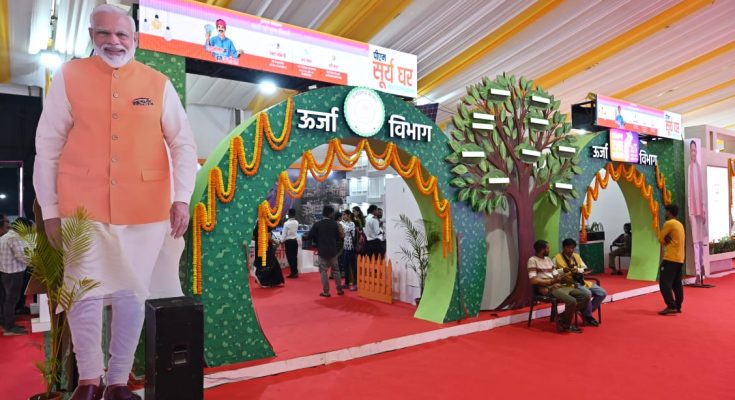 रायपुर, 01 नवंबर 2025 – छत्तीसगढ़ राज्य स्थापना के 25 वर्ष पूर्ण होने पर रजत जयंती के अवसर पर आयोजित राज्योत्सव में ऊर्जा विभाग की झांकी लोगों के आकर्षण का केंद्र बनी हुई है। प्रधानमंत्री सूर्य घर बिजली योजना में लोगों की विशेष रुचि है। इस योजना के तहत लोगों को सूर्य के प्रकाश से बिजली बनाने की सुविधा मिलेगी, जिससे पर्यावरण सुरक्षित रहेगा और लोगों को मुफ्त बिजली मिलेगी।