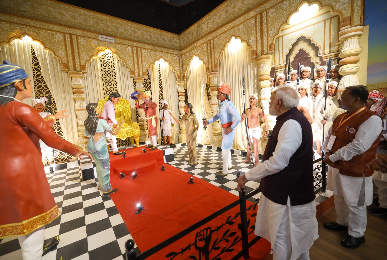 प्रधानमंत्री श्री नरेंद्र मोदी को प्रमुख सचिव श्री सोनमणि बोरा ने संग्रहालय की विशेषताओं की जानकारी दी। श्री बोरा ने बताया कि शहीद वीर नारायण सिंह आदिवासी स्वतंत्रता संग्राम सेनानी स्मारक सह संग्रहालय 50 करोड़ रुपए की लागत से तैयार किया गया है। यहां 14 गैलरियों में अंग्रेजी हुकूमत काल के जनजातीय स्वतंत्रता संग्राम सेनानियों की लगभग 650 मूर्तियाँ स्थापित की गई हैं। जनजातीय विद्रोहों को आसानी से समझाने के लिए डिजिटल माध्यमों की भी व्यवस्था की गई है।