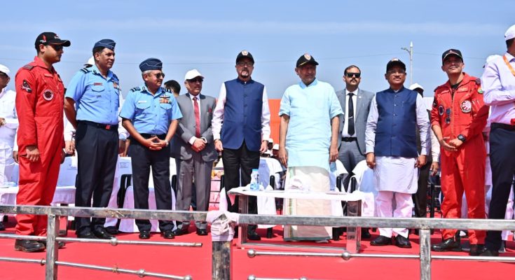 रायपुर, 5 नवम्बर 2025 :छत्तीसगढ़ राज्य स्थापना की 25वीं वर्षगांठ पर आज नवा रायपुर के सेंध जलाशय के ऊपर भारतीय वायु सेना की प्रतिष्ठित एरोबेटिक “सूर्यकिरण” की टीम ने रोमांचक एयर शो का प्रदर्शन किया। देश के उप राष्ट्रपति श्री सी.पी. राधाकृष्णन, राज्यपाल श्री रमेन डेका, मुख्यमंत्री श्री विष्णु देव साय और विधानसभा अध्यक्ष डॉ. रमन सिंह के साथ हजारों लोगों ने अद्भूत और रोमांचक एयर शो का आनंद लिया।