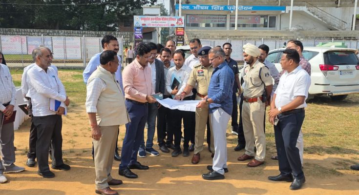 प्रमुख सचिव श्री बोरा ने सबसे पहले गांधी स्टेडियम पहुंचकर राष्ट्रपति के आगमन हेतु तैयार किए जा रहे हेलीपैड स्थल का निरीक्षण किया। उन्होंने सुरक्षा व्यवस्था, आगमन एवं निर्गमन मार्ग, हेलीपैड की मजबूती तथा आसपास की साफ-सफाई का बारीकी से जायजा लेते हुए अधिकारियों को आवश्यक निर्देश दिए।