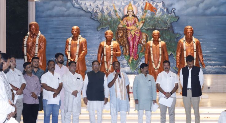 रायपुर। भारतीय जनता पार्टी प्रदेश कार्यालय कुशाभाऊ ठाकरे परिसर में गुरुवार को कार्यालय परिवार ने वंदे मातरम् गीत गायन का पूर्वाभ्यास किया। इस अवसर पर भाजपा के प्रदेश संगठन महामंत्री पवन साय ने कहा कि वंदे मातरम् गीत देश प्रेम, राष्ट्र के प्रति समर्पण और देश की एकता का प्रतीक है। इसकी गूंज में भारत की अस्मिता, गौरव और अमर बलिदान की कहानी है।