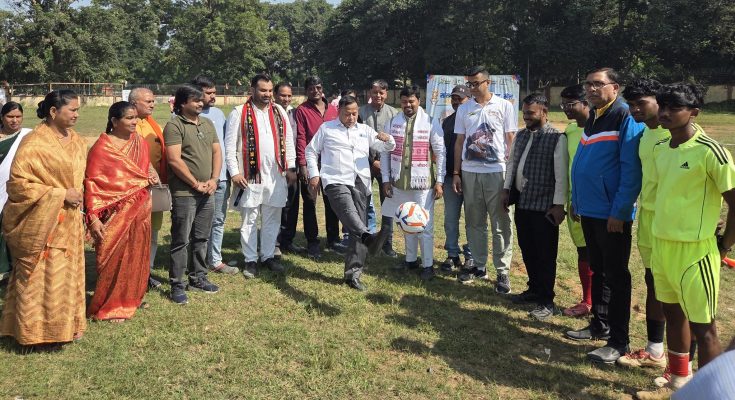 रांची (SHABD) : रक्षा राज्य मंत्री संजय सेठ की पहल पर आज से रांची में सांसद खेल महोत्सव के तहत फुटबॉल प्रतियोगिता की शुरूआत हुई। कांके विधानसभा क्षेत्र में आयोजित हो रहे इस दो दिवसीय फुटबॉल प्रतियोगिता के उद्घाटन के मौके पर भाजपा रांची के ग्रामीण जिला अध्यक्ष धीरज महतो और सीआईपी के निदेशक डॉ0 बी0 के0 चौधरी समेत कई गणमान्य लोग मौजूद थे। इस दौरान अतिथियों ने खिलाड़ियों का हौसला बढ़ाया। इस प्रतियोगिता में दस टीमें हिस्सा ले रही हैं।