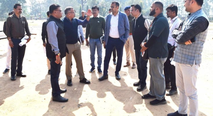 अंबिकापुर कलेक्टर श्री विलास भोसकर एवं वरिष्ठ पुलिस अधीक्षक श्री राजेश अग्रवाल सहित प्रशासन और पुलिस के वरिष्ठ अधिकारियों ने सोमवार को कार्यक्रम स्थल का निरीक्षण कर समस्त व्यवस्थाओं की विस्तृत समीक्षा की। इसमें डोम व्यवस्था, पंडाल निर्माण, बैठक एवं पार्किंग प्रबंध, आगमन व निकासी मार्ग, वीआईपी और अतिथि कक्ष, मैदान की सफाई, पेयजल उपलब्धता, सुरक्षा एवं यातायात नियंत्रण के कार्यों की प्रगति पर विशेष ध्यान दिया गया।