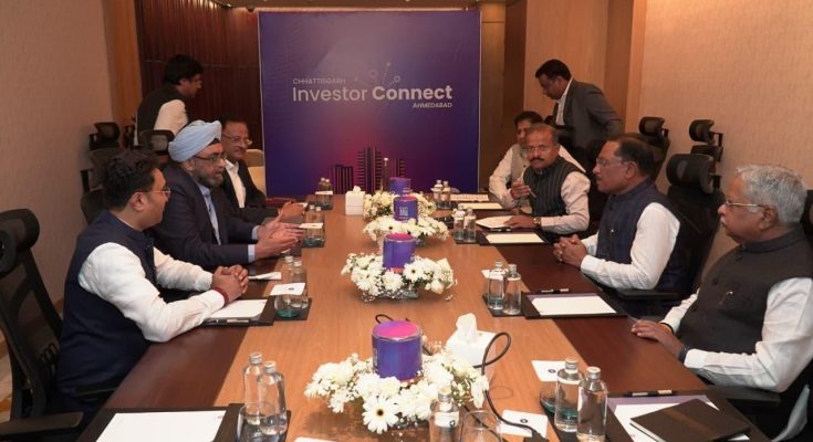 अहमदाबाद में आयोजित इन्वेस्टर कनेक्ट कार्यक्रम में मुख्यमंत्री श्री साय ने देश के शीर्ष उद्योगपतियों से मुलाकात कर छत्तीसगढ़ में निवेश की संभावनाओं पर चर्चा की। इस अवसर पर छत्तीसगढ़ को ₹33,321 करोड़ के निवेश प्रस्ताव प्राप्त हुए, जिनसे 14,900 नए रोजगार सृजित होंगे।