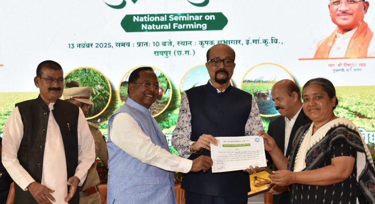 रायपुर, 13 नवंबर 2025 : प्राकृतिक और जैविक खेती आज की सबसे बड़ी आवश्यकता है। रासायनिक उर्वरकों का उपयोग केवल उतना ही होना चाहिए जितना बिल्कुल जरूरी हो। किसानों में इस बात की जागरूकता लाना समय की मांग है। जल संरक्षण के लिएअभी प्रभावी कदम नहीं उठाए गए तो भविष्य में जल संकट और तेज़ी से बढ़ेगा। राज्यपाल श्री रमेन डेका ने आज प्राकृतिक खेती विषय पर आयोजित राष्ट्रीय संगोष्ठी के उद्घाटन कार्यक्रम में उक्त विचार व्यक्त किए।