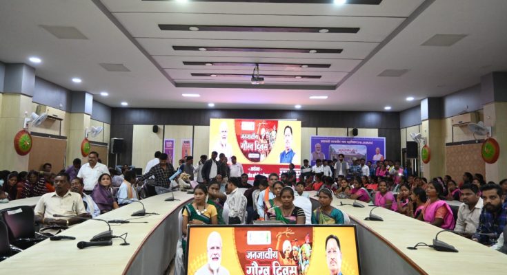 रायपुर,15 नवंबर 2025 : महासमुंद जिला पंचायत सभाकक्ष में भगवान बिरसा मुंडा की 150वीं जयंती पर जनजातीय गौरव दिवस पूरे उत्साह और सम्मान के साथ मनाया गया। प्रधानमंत्री श्री नरेन्द्र मोदी नर्मदा ज़िले के डेडियापाड़ा से वर्चुअली शामिल हुए और दो बहुउद्देशीय केंद्रों का शुभारंभ एवं 13 छात्रावासों का शिलान्यास किया।