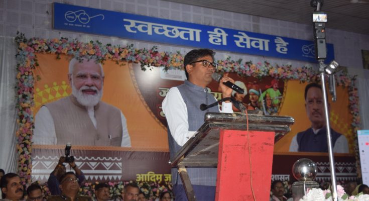 जिला स्तरीय कार्यक्रम को संबोधित करते हुए वित्तमंत्री श्री ओ पी चौधरी ने कहा कि देश की स्वतंत्रता में स्वयं को समर्पित करने वाले आदिवासी समाज के सेनानियों का बहुत बड़ा योगदान है। उन्होंने कहा कि आज भगवान बिरसा मुंडा की जयंती पर हम उन्हें नमन करते हैं, अंग्रेजों के खिलाफ लड़ते हुए उन्होंने अपना जीवन न्योछावर कर दिया।