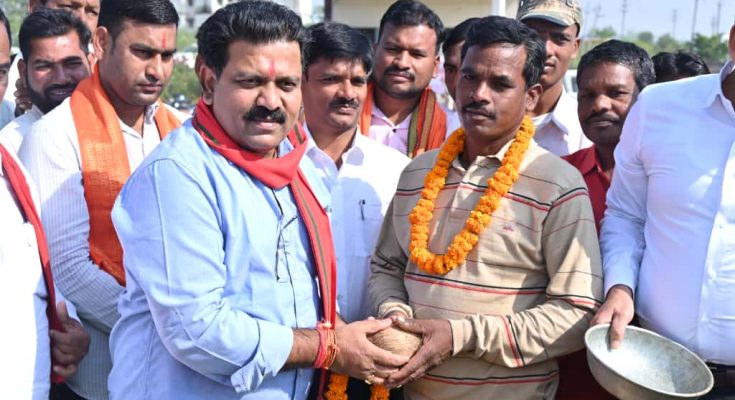 रायपुर, 15 नबम्बर 2025 : कबीरधाम जिले के बोड़ला विकासखंड स्थित महराजपुर धान उपार्जन केंद्र में आज उपमुख्यमंत्री श्री विजय शर्मा ने समर्थन मूल्य पर धान खरीदी महापर्व का विधिवत शुभारंभ किया। इस अवसर पर उन्होंने परम्परागत रूप से तौल यंत्रों की पूजा-अर्चना कर, किसानों का तिलक करते हुए श्रीफल भेंट किया। उन्होंने खरीदी प्रक्रिया की शुरुआत कर किसानों का उत्साहवर्धन किया।