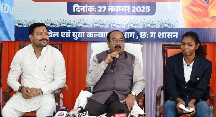 रायपुर, 27 नवम्बर 2025 : उप मुख्यमंत्री तथा खेल एवं युवा कल्याण मंत्री श्री अरुण साव और छत्तीसगढ़ की अंतरराष्ट्रीय कबड्डी खिलाड़ी सुश्री संजू देवी ने बांग्लादेश में आयोजित महिला कबड्डी विश्व कप में भारत के खिताबी जीत के सफर को साझा किया। इस विश्व कप में छत्तीसगढ़ के कोरबा जिले के छोटे से गांव केराकछार की 23 साल की सुश्री संजू देवी रावत को टूर्नामेंट का मोस्ट वेल्युबल प्लेयर चुना गया। फाइनल में भारत को मिले कुल 35 प्वाइंट्स में से 16 प्वाइंट्स अकेले संजू ने दिलाए।