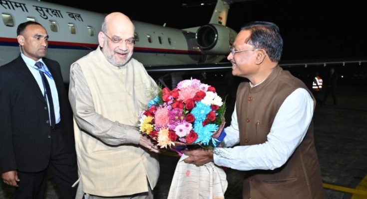 रायपुर 28 नवंबर 2025/ केंद्रीय गृह मंत्री श्री अमित शाह के रायपुर आगमन पर स्वामी विवेकानंद विमानतल में मुख्यमंत्री श्री विष्णु देव साय ने आत्मीय स्वागत किया।