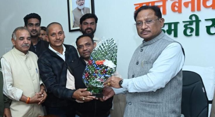 रायपुर, 07 दिसंबर 2025 : मुख्यमंत्री श्री विष्णु देव साय से विगत दिवस राजधानी रायपुर स्थित मुख्यमंत्री निवास कार्यालय में छत्तीसगढ़ कुंभकार समाज के प्रतिनिधि मंडल ने सौजन्य भेंट की। प्रतिनिधि मंडल ने मुख्यमंत्री श्री साय को आगामी जनवरी 2025 में रायपुर जिले के ग्राम नवागांव (कोलियारी) में आयोजित होने वाले प्रदेश स्तरीय महाधिवेशन में मुख्य अतिथि के रूप में शामिल होने हेतु आमंत्रित किया।