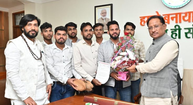 प्रतिनिधिमंडल ने मुख्यमंत्री श्री साय को संत शिरोमणि बाबा गुरु घासीदास जी की 269वीं जयंती के उपलक्ष्य में आयोजित गुरु पर्व कार्यक्रम में बतौर मुख्य अतिथि शामिल होने का आमंत्रण दिया।