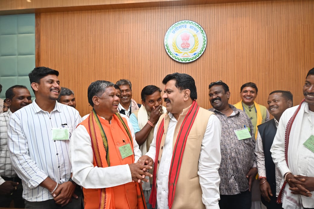 रायपुर, 16 दिसम्बर 2025 : बस्तर संभाग से आए विभिन्न ग्राम पंचायतों के सरपंचगणों ने आज नवनिर्मित छत्तीसगढ़ विधानसभा भवन का भ्रमण कर विधानसभा की कार्यप्रणाली और लोकतांत्रिक प्रक्रियाओं को नजदीक से देखा। इस अवसर पर सरपंचों ने उपमुख्यमंत्री श्री विजय शर्मा से मुलाकात भी की। बस्तर के जन जन में लोकतंत्र में विश्वास जगाने के लिए उपमुख्यमंत्री श्री विजय शर्मा की पहल पर बस्तर संभाग के विभिन्न ग्रामों का प्रतिनिधित्व करने वाले सरपंचों को नवीन विधानसभा भवन का भ्रमण कराया गया।