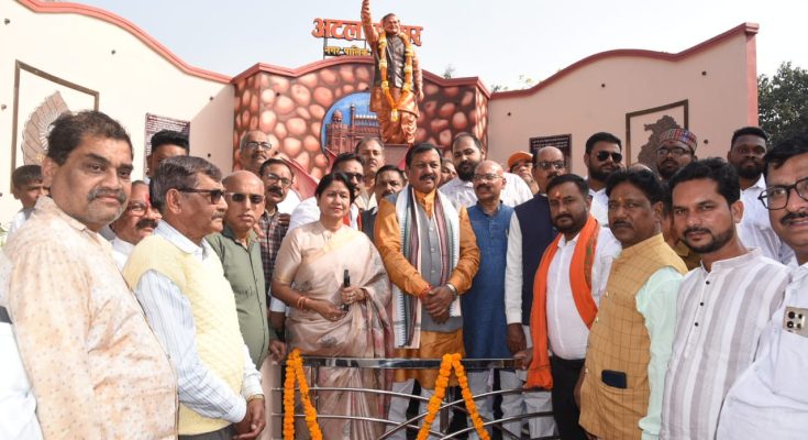 रायपुर, 25 दिसंबर 2025 : पूर्व प्रधानमंत्री एवं भारत रत्न अटल बिहारी वाजपेयी की 101वीं जयंती और सुशासन दिवस के पावन अवसर पर दुर्ग शहर को एक ऐतिहासिक सौगात मिली। शहर के सुवा चौक स्थित जेल तिराहा अब अटल परिसर चौक के नाम से जाना जाएगा। इस अवसर पर अटल परिसर प्रांगण में स्वर्गीय अटल बिहारी वाजपेयी की आदमकद प्रतिमा का भव्य लोकार्पण दुर्ग लोकसभा सांसद विजय बघेल के करकमलों से संपन्न हुआ।