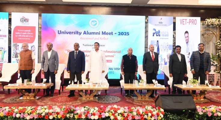 रायपुर, 27 दिसंबर 2025 : दाऊ श्री वासुदेव चन्द्राकर कामधेनु विश्वविद्यालय, दुर्ग में कुलपति डॉ.आर.आर.बी. सिंह के मार्गदर्शन में विश्वविद्यालय के पूर्व छात्र-छात्राओं का मिलन समारोह एलुमनाई मीट-2025 संपन्न हुआ। इस मौके पर ‘स्ट्रेदनिंग द प्रोफेसनल्स अलाईन्स अमंग एलुमनाई विषय पर राष्ट्रीय सेमीनार आयोजित किया गया।
