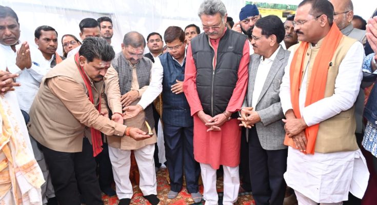 रायपुर, 30 दिसंबर 2025 : पवित्र सावन माह में अमरकंटक से मां नर्मदा का पवित्र जल लेकर दुर्गम एवं कठिन रास्तों से पदयात्रा करते हुए कवर्धा स्थित भगवान बूढ़ा महादेव में जलाभिषेक करने आने वाले हजारों श्रद्धालु कांवड़ियों के लिए आज एक ऐतिहासिक सौगात मिली। उपमुख्यमंत्री श्री विजय शर्मा ने कांवड़ियों की सुविधा और विश्राम के लिए 1 करोड़ 54 लाख 72 हजार रूपए की लागत से बनने वाले श्री पंचमुखी बूढ़ा महादेव मंदिर कांवड़िया विश्राम गृह (डोम) के निर्माण कार्य का विधि-विधान से पूजा-अर्चना कर भूमिपूजन किया। भूमिपूजन कार्यक्रम से पूर्व उपमुख्यमंत्री श्री विजय शर्मा ने भगवान बूढ़ा महादेव मंदिर पहुंचकर जलाभिषेक किया एवं पूजा-अर्चना कर प्रदेशवासियों की सुख-समृद्धि की कामना की।
