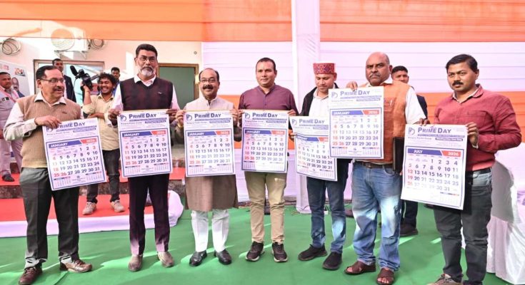 रायपुर, 30 दिसम्बर 2025 : उप मुख्यमंत्री श्री अरुण साव ने आज राजधानी रायपुर से प्रकाशित दैनिक अंग्रेजी समाचार पत्र ‘प्राइम डे’ (Prime Day) के वर्ष 2026 के कैलेंडर का विमोचन किया। नवा रायपुर में छत्तीसगढ़ संवाद परिसर में कैलेंडर के विमोचन के दौरान वरिष्ठ पत्रकार श्री नारायण भोई, श्री हरीश तिवारी, श्री दिलीप साहू, श्री शुभम वर्मा, ‘प्राइम डे’ के संपादक श्री कबीर शाह और ब्यूरो प्रमुख श्री हरिमोहन तिवारी भी मौजूद थे।