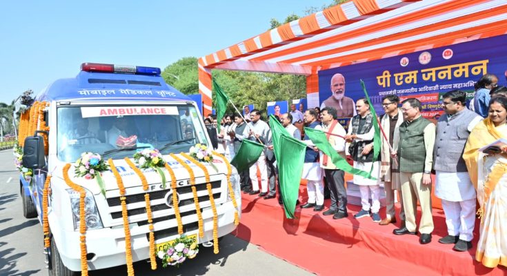 रायपुर, 31 दिसंबर 2025 :दूरस्थ और घने वनांचल वाले आदिवासी क्षेत्रों में अब स्वास्थ्य सेवाएँ लोगों के दरवाज़े तक पहुँचेंगी। प्रधानमंत्री जनजातीय आदिवासी न्याय महाअभियान “पीएम जनमन” के तहत बुधवार को नवा रायपुर में मुख्यमंत्री श्री विष्णुदेव साय ने 57 मोबाइल मेडिकल यूनिट वाहनों को हरी झंडी दिखाकर रवाना किया। कार्यक्रम में स्वास्थ्य मंत्री श्री श्याम बिहारी जायसवाल सहित मंत्रिमंडल के सदस्य, जनप्रतिनिधि और विभागीय अधिकारी-कर्मचारी उपस्थित थे।