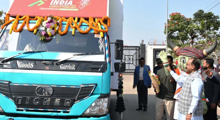 रायपुर. 1 जनवरी 2026 : उप मुख्यमंत्री तथा खेल एवं युवा कल्याण मंत्री श्री अरुण साव ने छत्तीसगढ़ की मेजबानी में देश में पहली बार हो रहे खेलो इंडिया नेशनल ट्राइबल गेम्स के प्रचार-प्रसार के लिए मशाल गौरव यात्रा को हरी झंडी दिखाकर रवाना किया। खेलो इंडिया ट्राइबल गेम्स के प्रचार-प्रसार के लिए यह वाहन राज्य के सभी जिलों में जाएगी। आयोजन के शुभंकर मोरवीर, थीम-सांग और मशाल के साथ प्रदेशभर में घूम-घूमकर यह लोगों को खेलो इंडिया ट्राइबल गेम्स की जानकारी देगी।