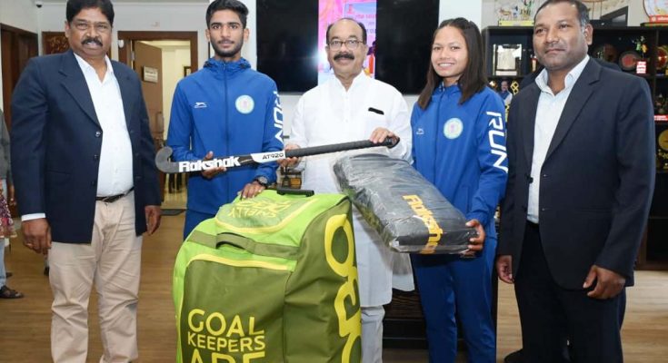 रायपुर. 2 जनवरी 2026 : उप मुख्यमंत्री तथा खेल एवं युवा कल्याण मंत्री श्री अरुण साव ने बेंग्लुरू स्थित साई (Sports Authority of India) के नेशनल सेंटर ऑफ एक्सीलेंस में परफॉर्मेंस असेसमेंट के लिए चयनित खिलाड़ियों को हॉकी किट प्रदान किया। उन्होंने आज नवा रायपुर स्थित अपने शासकीय निवास कार्यालय में गोलकीपर अल्फाज खान को गोलकीपिंग का संपूर्ण किट तथा फॉरवर्ड पोजिशन में खेलने वाली मधु सिदार और दामिनी खुसरो को हाकी स्टिक प्रदान किया। ये तीनों खिलाड़ी बिलासपुर स्थित स्वर्गीय बी.आर. यादव राज्य प्रशिक्षण केंद्र बहतराई में पिछले तीन सालों से हॉकी का प्रशिक्षण ले रहे हैं।