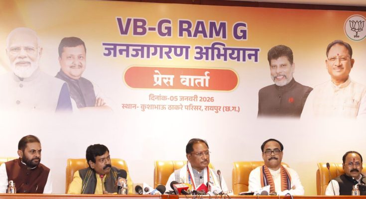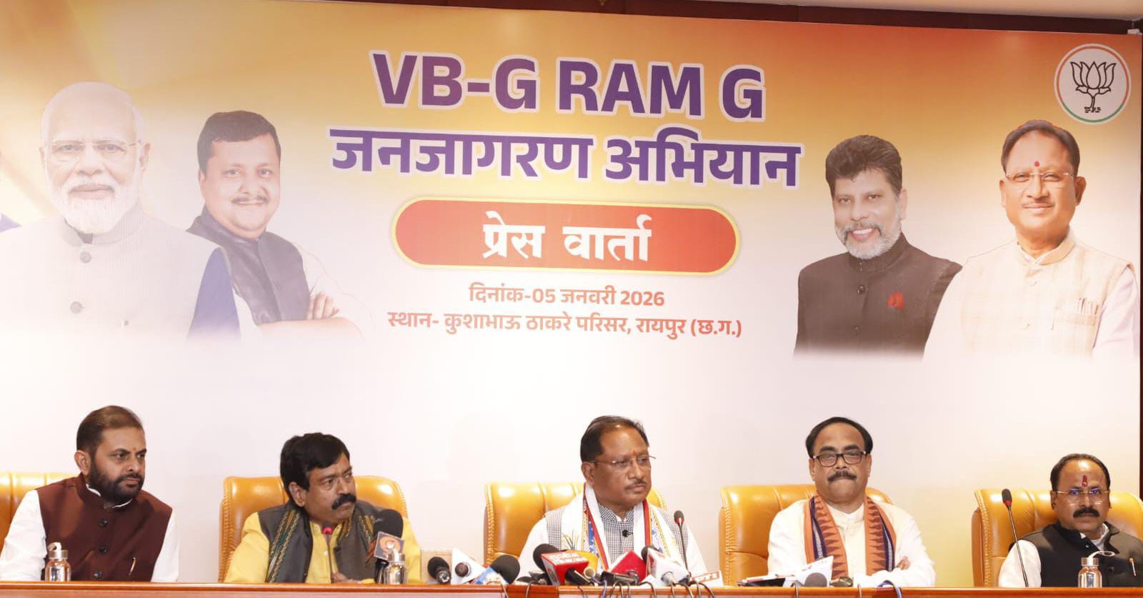 रायपुर 5 जनवरी 2025/ मुख्यमंत्री श्री विष्णु देव साय ने आज प्रदेश भाजपा कार्यालय में प्रेस कांफ्रेंस को संबोधित करते हुए कहा कि प्रधानमंत्री श्री नरेंद्र मोदी के नेतृत्व में ग्रामीण विकास के क्षेत्र में एक ऐतिहासिक कदम उठाते हुए विकसित भारत जी-राम-जी अधिनियम 2025 लाया गया है, जो देश के गांवों को विकसित बनाने और ग्रामीण अर्थव्यवस्था को सुदृढ़ करने की दिशा में मील का पत्थर साबित होगा।