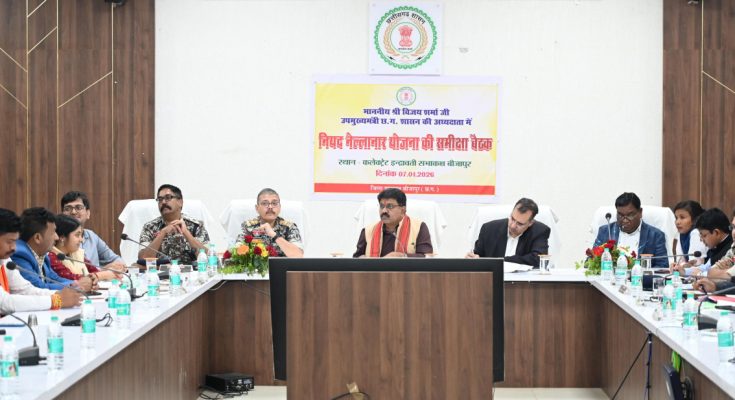 रायपुर, 08 जनवरी 2026:छत्तीसगढ़ शासन के उपमुख्यमंत्री एवं गृहमंत्री श्री विजय शर्मा बीजापुर के अपने दो दिवसीय प्रवास के दौरान बुधवार को जिला कार्यालय सभाकक्ष में जिला स्तरीय अधिकारियों के साथ नियद नेल्ला नार योजनान्तर्गत संचालित विकास कार्यों की समीक्षा बैठक ली। बैठक में उन्होंने विभागवार योजनाओं के जमीनी स्तर पर क्रियान्वयन की जानकारी लेते हुए कहा कि केंद्रीय गृहमंत्री श्री अमित शाह के नेतृत्व में 31 मार्च 2026 तक सशस्त्र माओवाद का पूरी तरह उन्मूलन सुनिश्चित किया जाएगा। इसके बाद बस्तर क्षेत्र में शांति, सुरक्षा और विकास का नया अध्याय शुरू होगा।