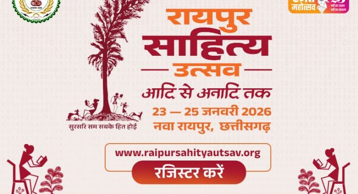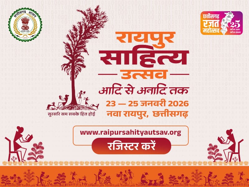 रायपुर 18 जनवरी 2026/छत्तीसगढ़ की समृद्ध साहित्यिक, सांस्कृतिक और बौद्धिक परंपरा को राष्ट्रीय पटल पर सशक्त रूप से प्रस्तुत करने के उद्देश्य से रायपुर साहित्य उत्सव–2026 का भव्य आयोजन किया जा रहा है। यह तीन दिवसीय साहित्यिक महोत्सव 23 से 25 जनवरी 2026 तक नवा रायपुर अटल नगर स्थित पुरखौती मुक्तांगन में आयोजित होगा। यह उत्सव छत्तीसगढ़ की सांस्कृतिक आत्मा, लोक परंपराओं और साहित्यिक चेतना को नई पीढ़ी से जोड़ने का एक सशक्त माध्यम बनेगा। देशभर से प्रतिष्ठित साहित्यकार, कवि, कथाकार, विचारक, कलाकार, पत्रकार, रंगकर्मी और साहित्य प्रेमी इस आयोजन में सहभागिता करेंगे।