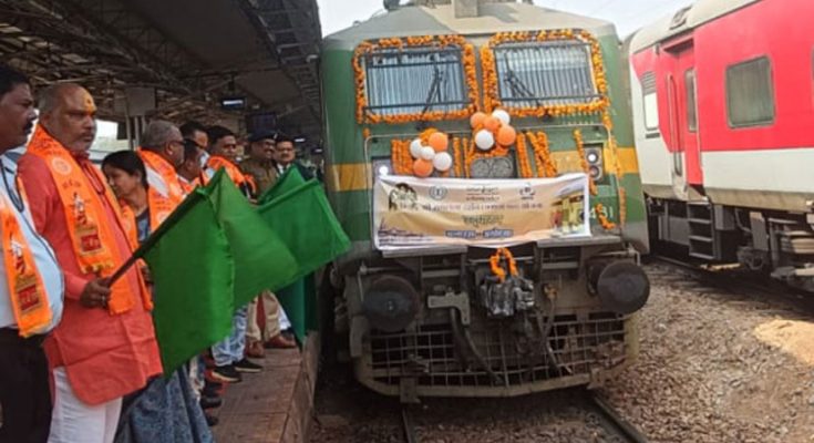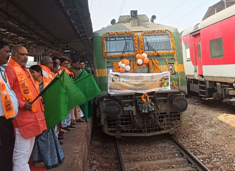 इसी क्रम में आज राजनांदगांव रेलवे स्टेशन से विशेष ट्रेन के आगमन एवं प्रस्थान के अवसर पर श्रद्धा, उत्साह और भक्ति से ओतप्रोत वातावरण देखने को मिला। रेलवे स्टेशन प्रभु श्रीराम के जयघोषों से गूंज उठा। तीर्थयात्रियों के परिजन, नागरिक एवं जनप्रतिनिधि बड़ी संख्या में उपस्थित रहे और यात्रियों को मंगलमय यात्रा की शुभकामनाएँ दीं।
