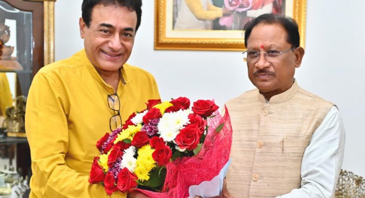 रायपुर, 24 जनवरी 2026 : मुख्यमंत्री श्री विष्णु देव साय से आज राजधानी रायपुर स्थित मुख्यमंत्री निवास कार्यालय में सुप्रसिद्ध फिल्म एवं टीवी अभिनेता नीतिश भारद्वाज ने सौजन्य मुलाकात की। मुख्यमंत्री श्री विष्णुदेव साय ने श्री नीतीश भारद्वाज का आत्मीय स्वागत करते हुए उन्हें बस्तर आर्ट से निर्मित महुआ वृक्ष की कलाकृति तथा बस्तर दशहरा पर आधारित कॉफी टेबल बुक भेंट की।मुख्यमंत्री श्री साय ने छत्तीसगढ़ की विशिष्ट जनजातीय कला, लोक परंपराओं और सांस्कृतिक विरासत पर प्रकाश डालते हुए इनके संरक्षण और संवर्धन के प्रयासों की जानकारी भी साझा की।