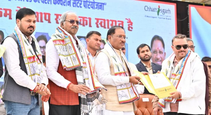चित्रोत्पला फिल्म सिटी और ट्राइबल एंड कल्चरल कन्वेंशन सेंटर के निर्माण से स्थानीय प्रतिभाओं को राष्ट्रीय-अंतरराष्ट्रीय मंच मिलेगा, निवेश के नए अवसर सृजित होंगे और छत्तीसगढ़ की सांस्कृतिक पहचान वैश्विक स्तर पर और अधिक सशक्त होगी। यह परियोजना आने वाले वर्षों में राज्य के युवाओं, कलाकारों और पर्यटन क्षेत्र के लिए विकास के नए द्वार खोलेगी। मुख्यमंत्री श्री विष्णु देव साय ने आज राजधानी रायपुर के ग्राम माना-तूता में चित्रोत्पला फिल्म सिटी तथा ट्राइबल एंड कल्चरल कन्वेंशन सेंटर के भूमिपूजन कार्यक्रम को संबोधित करते हुए यह बात कही।