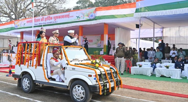 रायपुर, 26 जनवरी 2026 : गौरेला-पेंड्रा-मरवाही जिले में हर्ष, उल्लास और उमंग के साथ 77वां गणतंत्र दिवस मनाया गया। पर्यटन एवं संस्कृति, मंत्री श्री राजेश अग्रवाल ने जिला स्तरीय मुख्य समारोह में राष्ट्रीय ध्वज फहराया और संयुक्त परेड की सलामी ली। उन्होंने मुख्यमंत्री श्री विष्णुदेव साय के प्रदेश की जनता के नाम संदेश का वाचन किया। उत्कृष्ट सेवाओं के लिए विभिन्न विभागों के 53 अधिकारियों-कर्मचारियों और उत्कृष्ट खेल प्रदर्शन के लिए खिलाडियों को सम्मानित किया गया। समारोह में स्कूली छात्र-छात्राओं द्वारा पारंपरिक वेश-भूषा में देश भक्ति गीत-नृत्य की प्रस्तुती दी गई।