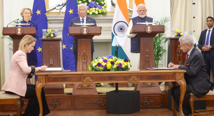 ‘भारत-यूरोपीय संघ मुक्त व्यापार समझौते का संपन्न होना भारत के आर्थिक क्रियाकलापों और वैश्विक दृष्टिकोण के संबंध में निर्णायक उपलब्धि का प्रतीक है। यह विश्वसनीय, पारस्परिक रूप से लाभप्रद और संतुलित साझेदारी को सुरक्षित करने के लिए भारत के दृष्टिकोण का समर्थन करता है।